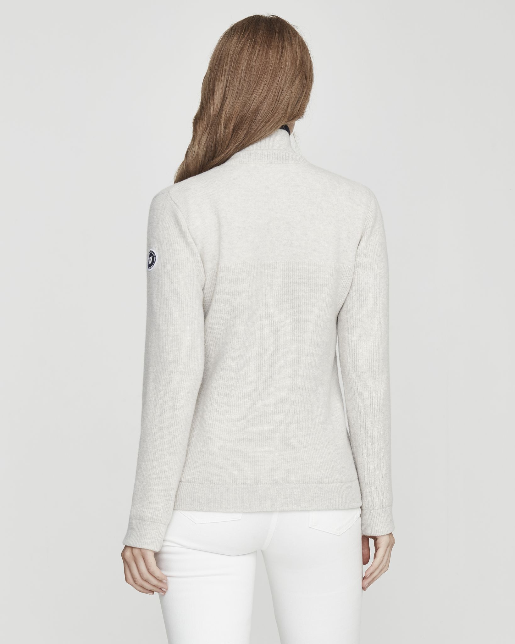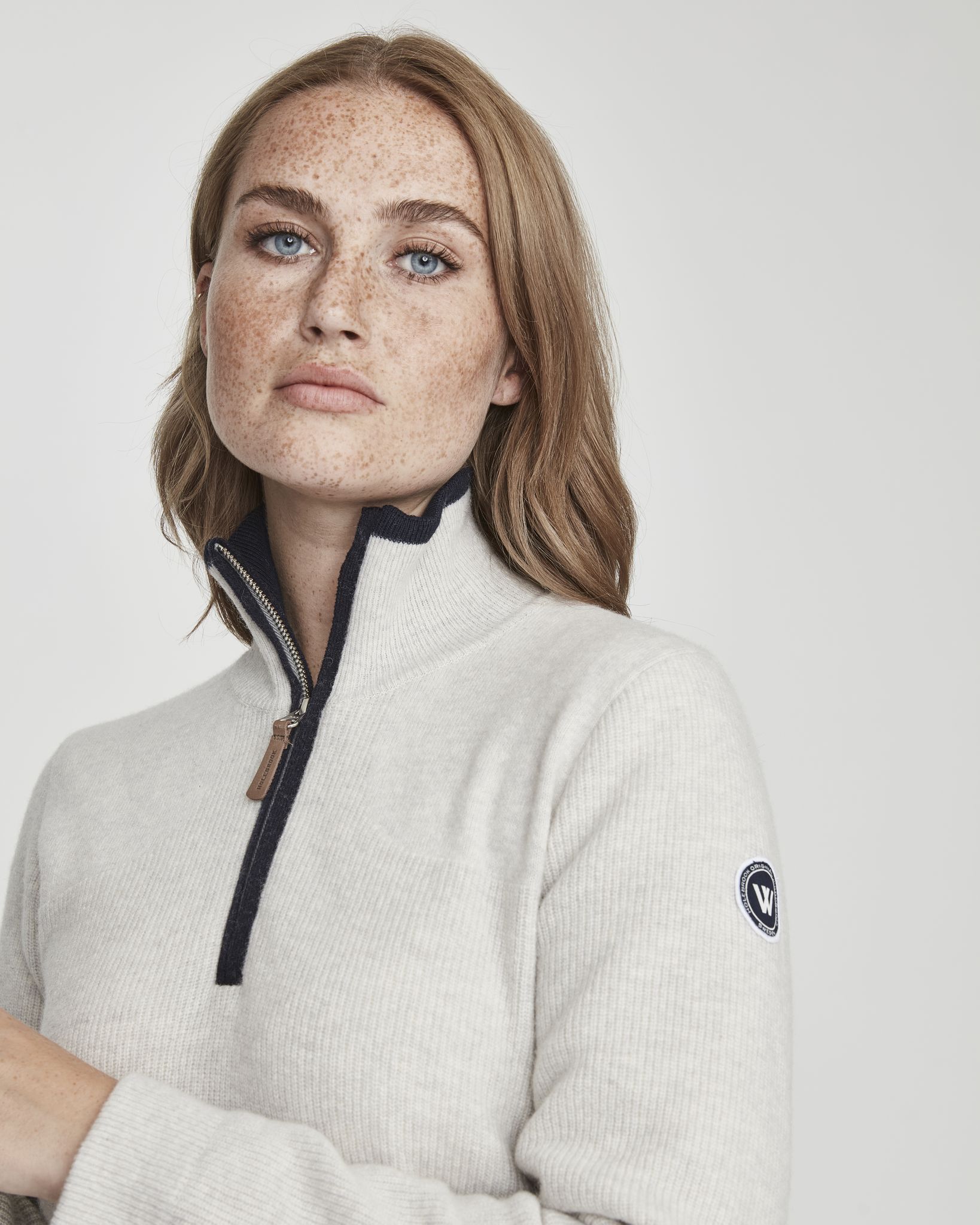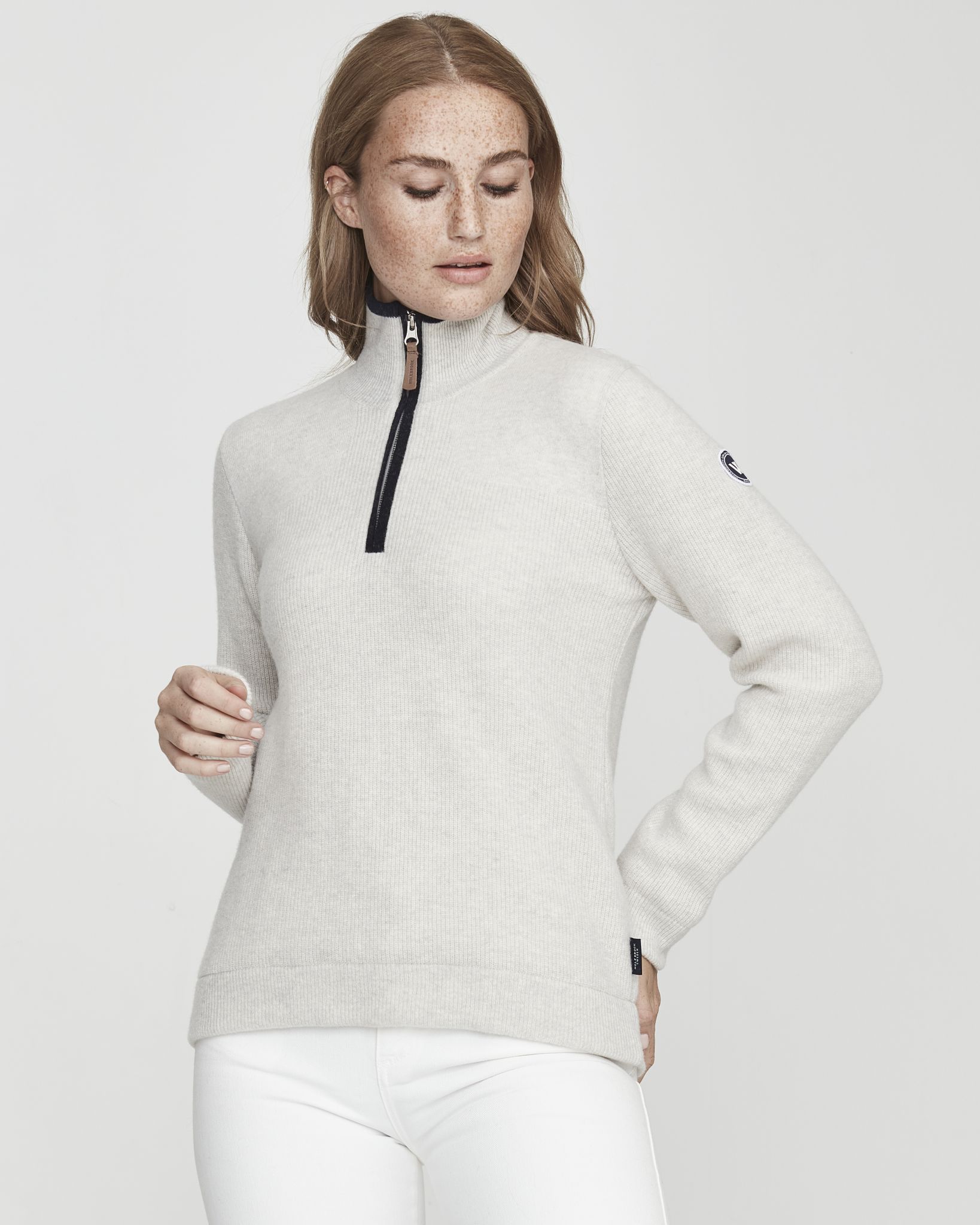 Women´s sweater. Holebrook windproof knitted T-neck sweater in wool blend. Sweaterjacket features high collar, thumbholes and elastic windproof lining.