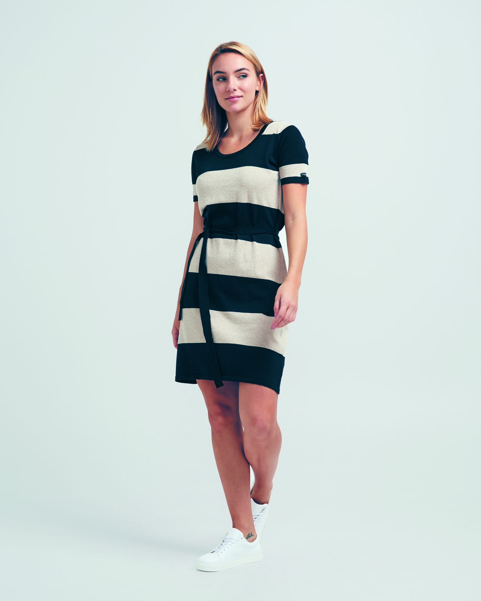 Women´s dress. Finely knitted Holebrook lightweight cotton dress featuring detachable knitted belt and crew neck. Above knee length.