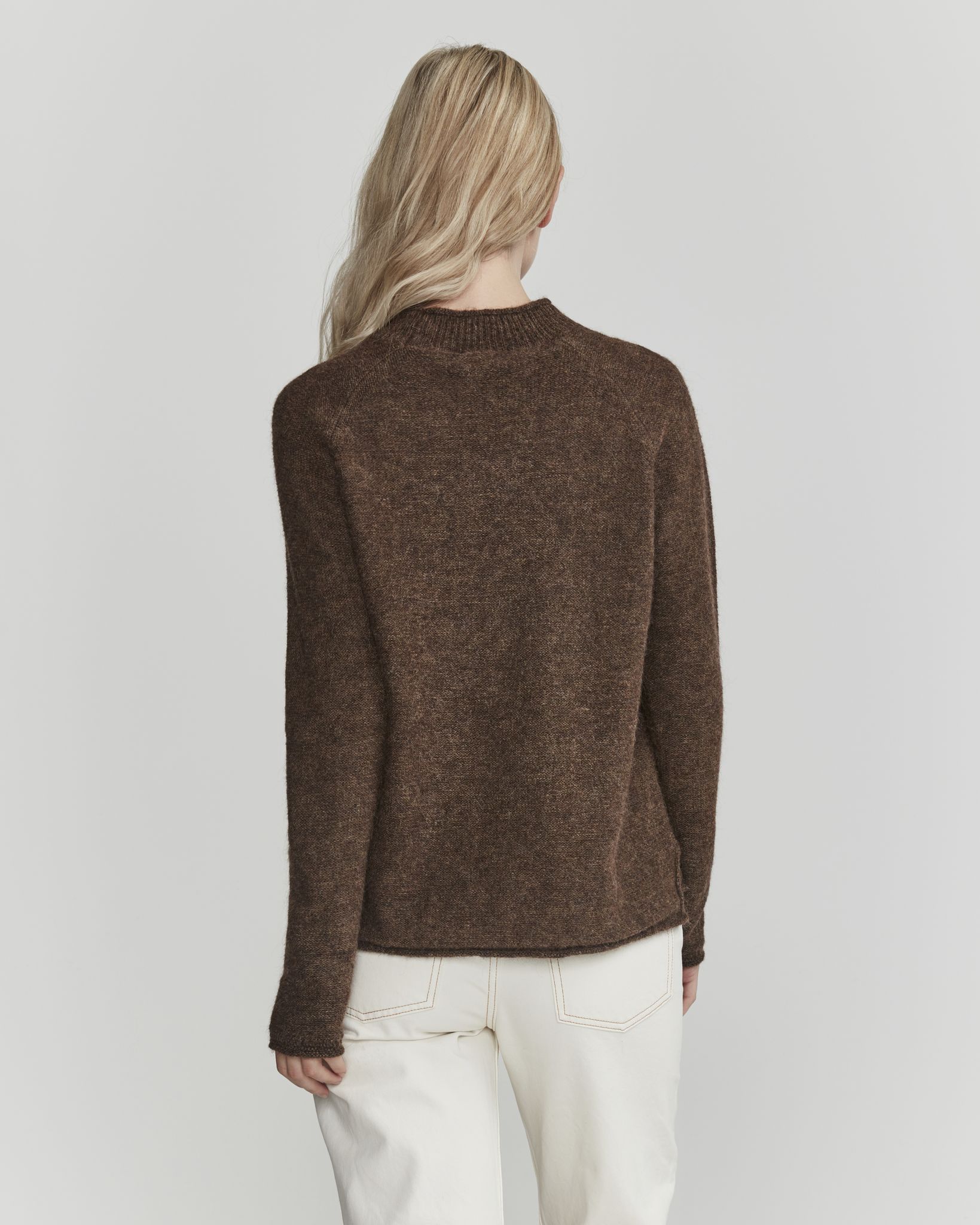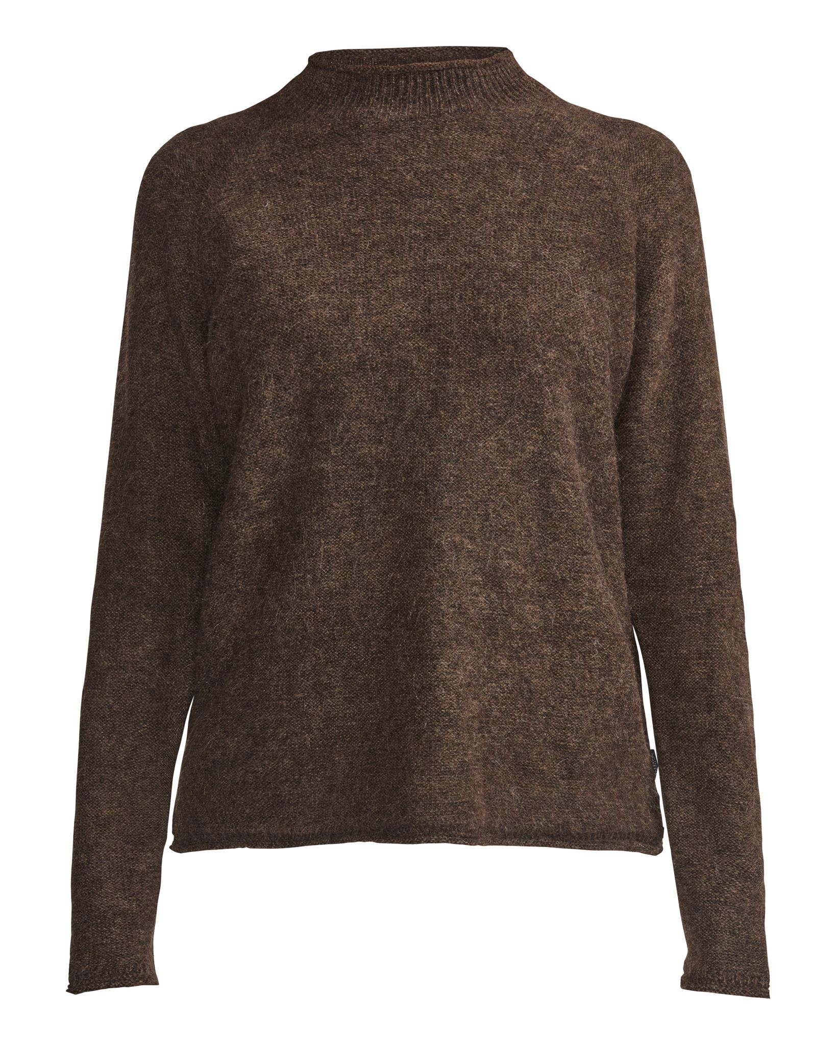 Women´s sweater. Beautiful brown melange Holebrook sweater is made from sot wool blend. Knit features round neck, longer back hem, raglan sleeves and rolled endings.