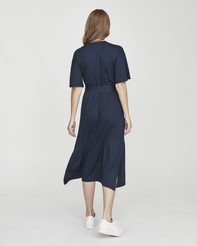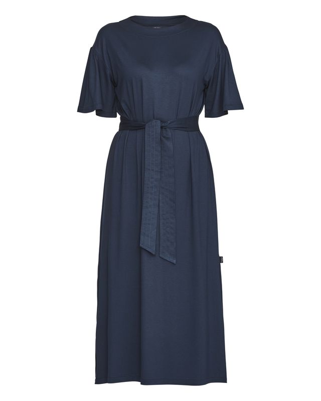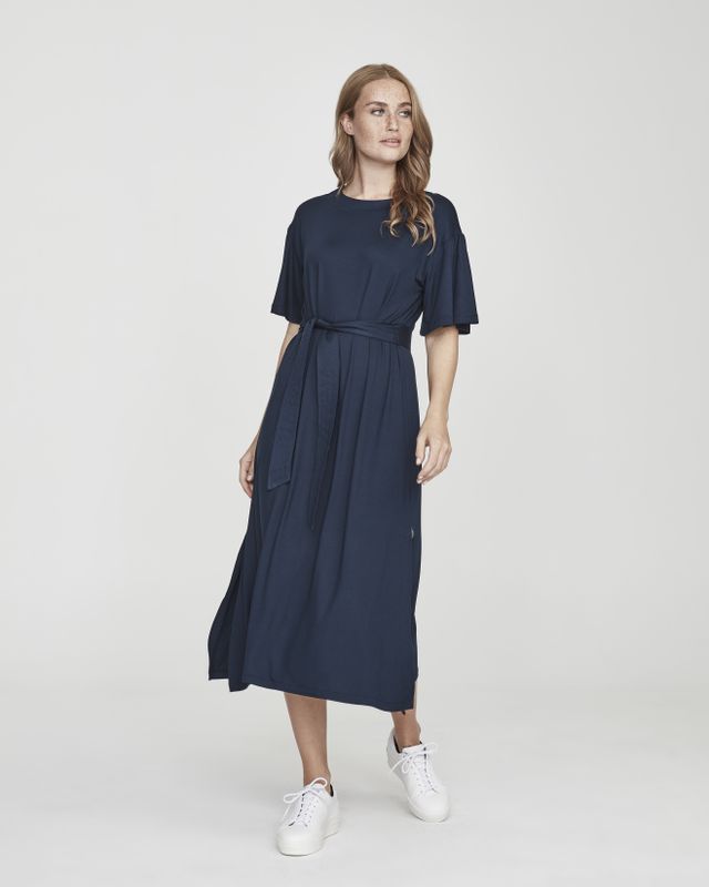 Women´s dress. Holebrook high-quality long dress in viscose jersey blend. Sleeves with flounce details and detachable waistband.