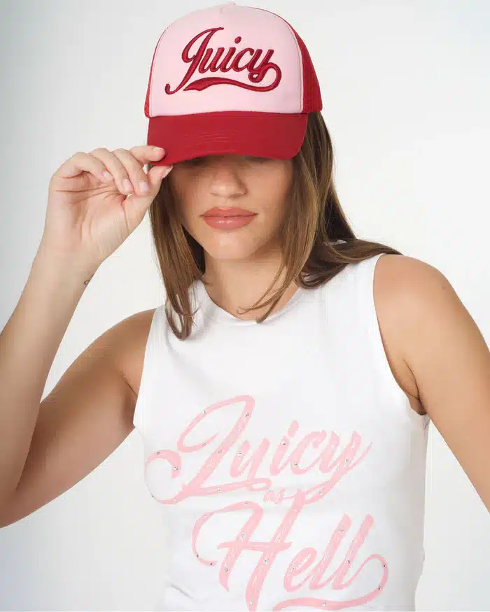 Juicy Couture Trucker Cap, featuring the Juicy Logo in a popping pink color!