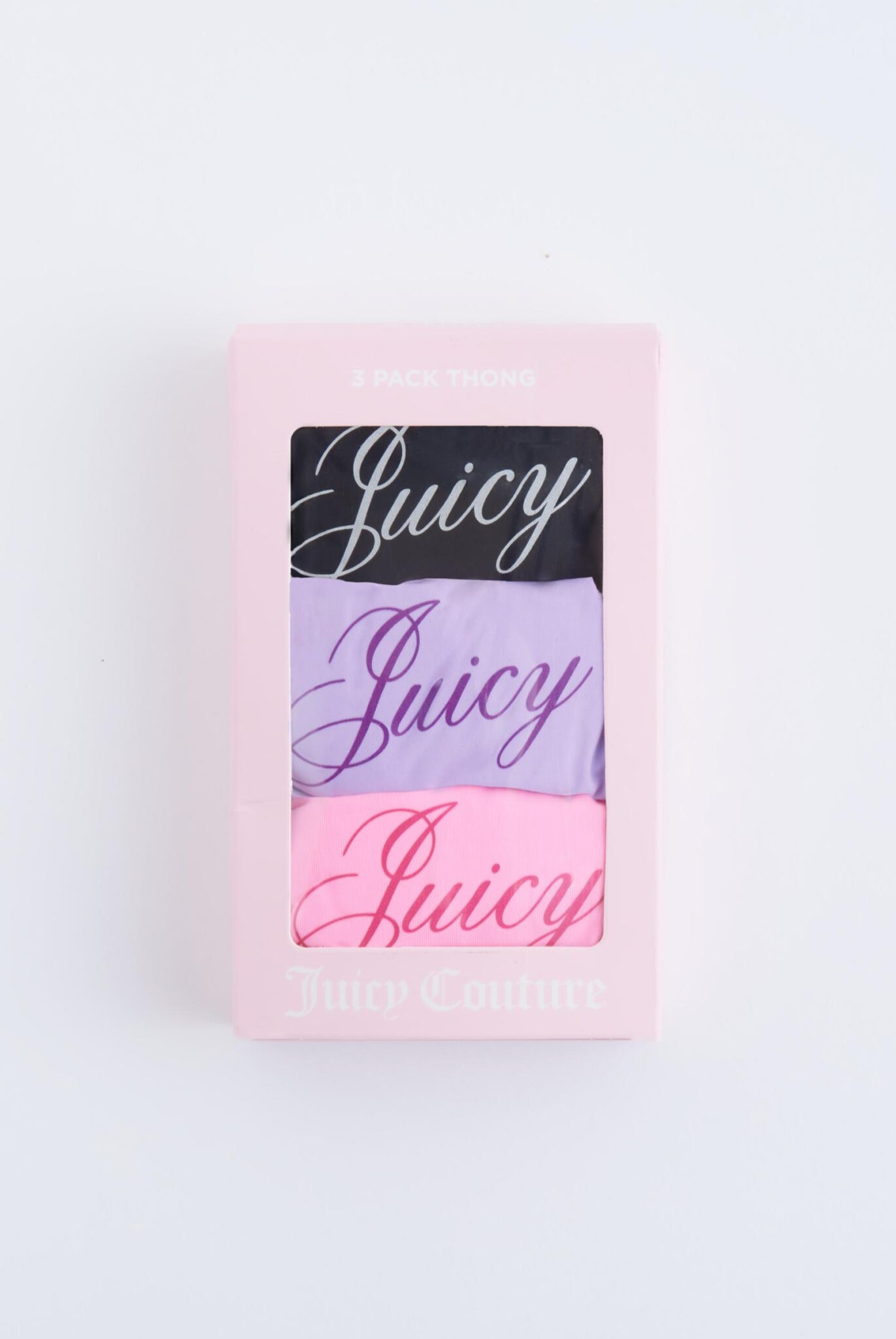 ‘Juicy Couture’ script logo 3pk thongs made in a microfibre fabric that provides a comfortable and flattering fit.