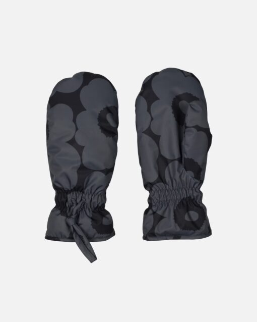 Marimekko padded Magneetti mittens feature the Unikko pattern. The mittens have elastic gathers and decorative drawstrings at the wrists.