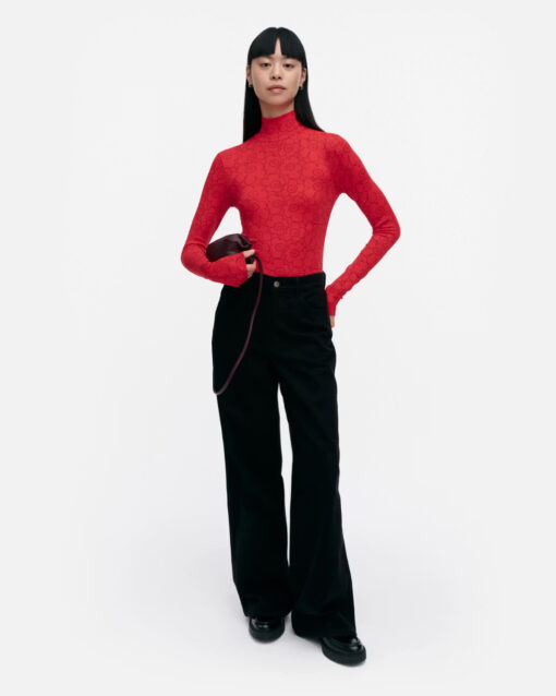 Marimekko T-neck jersey top featuring Unikko pattern.