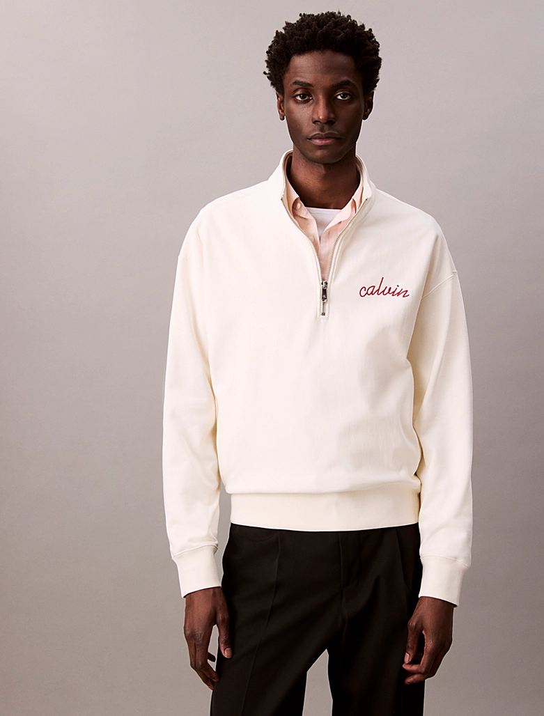 Calvin Klein sweatshirt featuring chain stitch logo design at front.