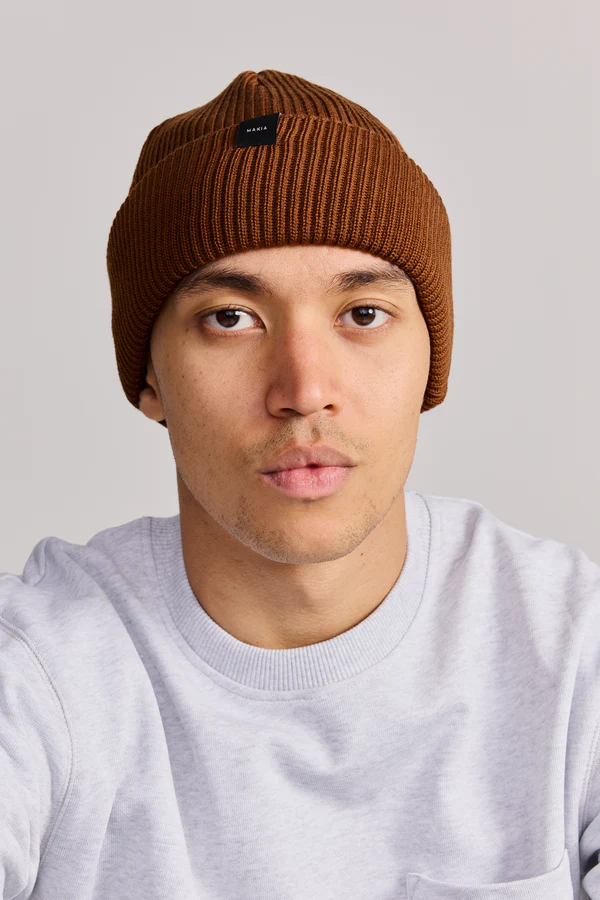Lämmin Makia merinovillapipo on valmistettu Suomessa. Ribattu pipo on 100% Italialaista merinovillaa. Käänteessä Makia logo.