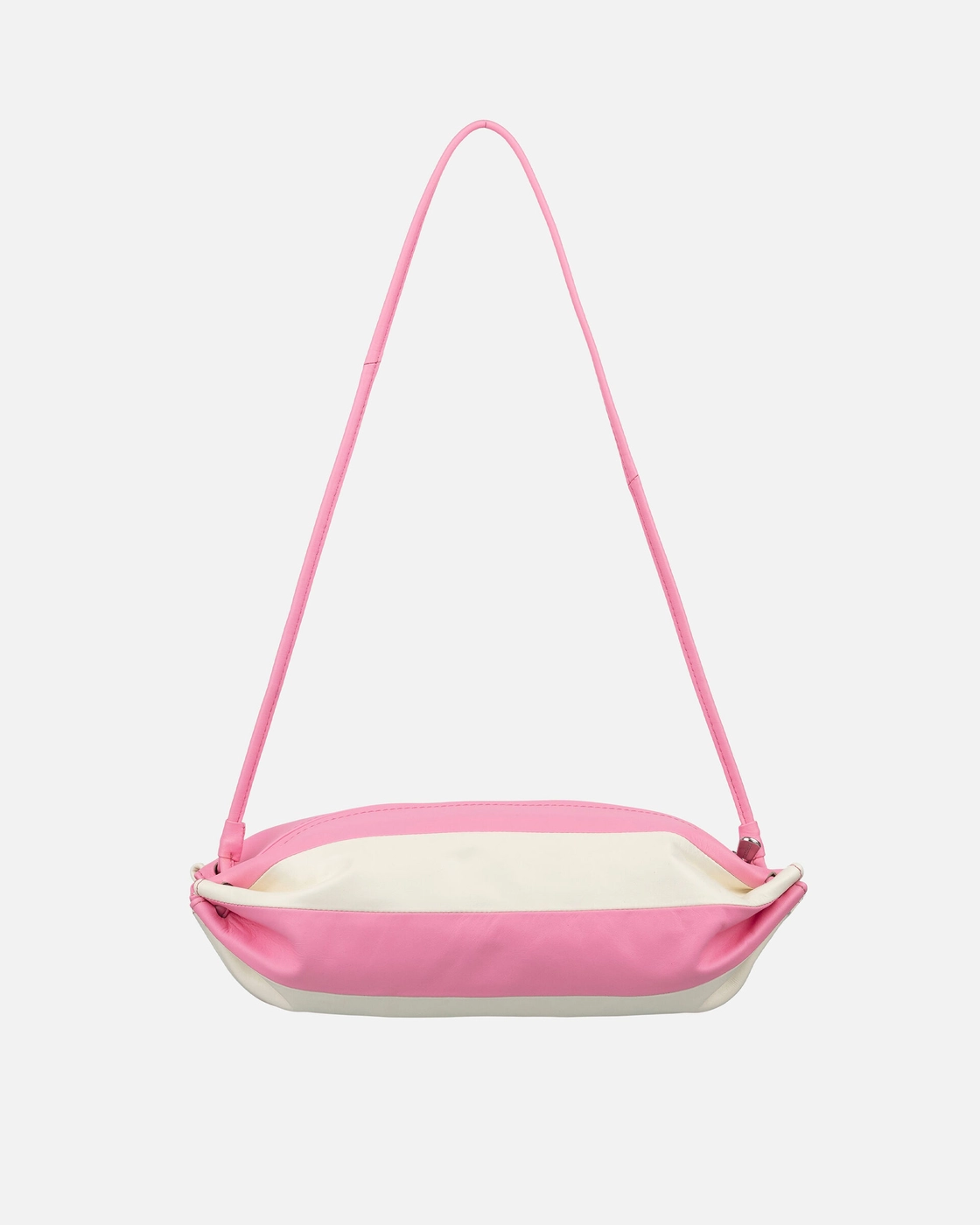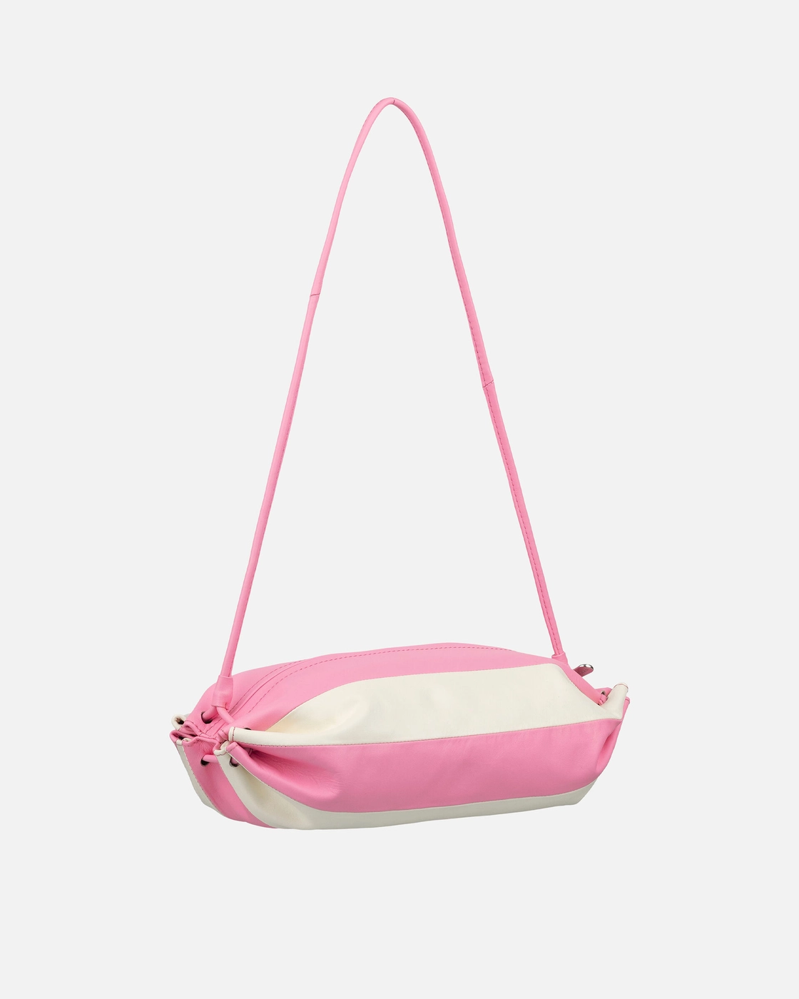 Candy wrapper inspired Marimekko Karla Multi shoulder bag is made of twocolor leather. The soft nappa leather develops a patina over time. The bag has a shoulder strap, a zipper closure, and a zipper pocket on the inside. The inside lining is made of recycled polyester.