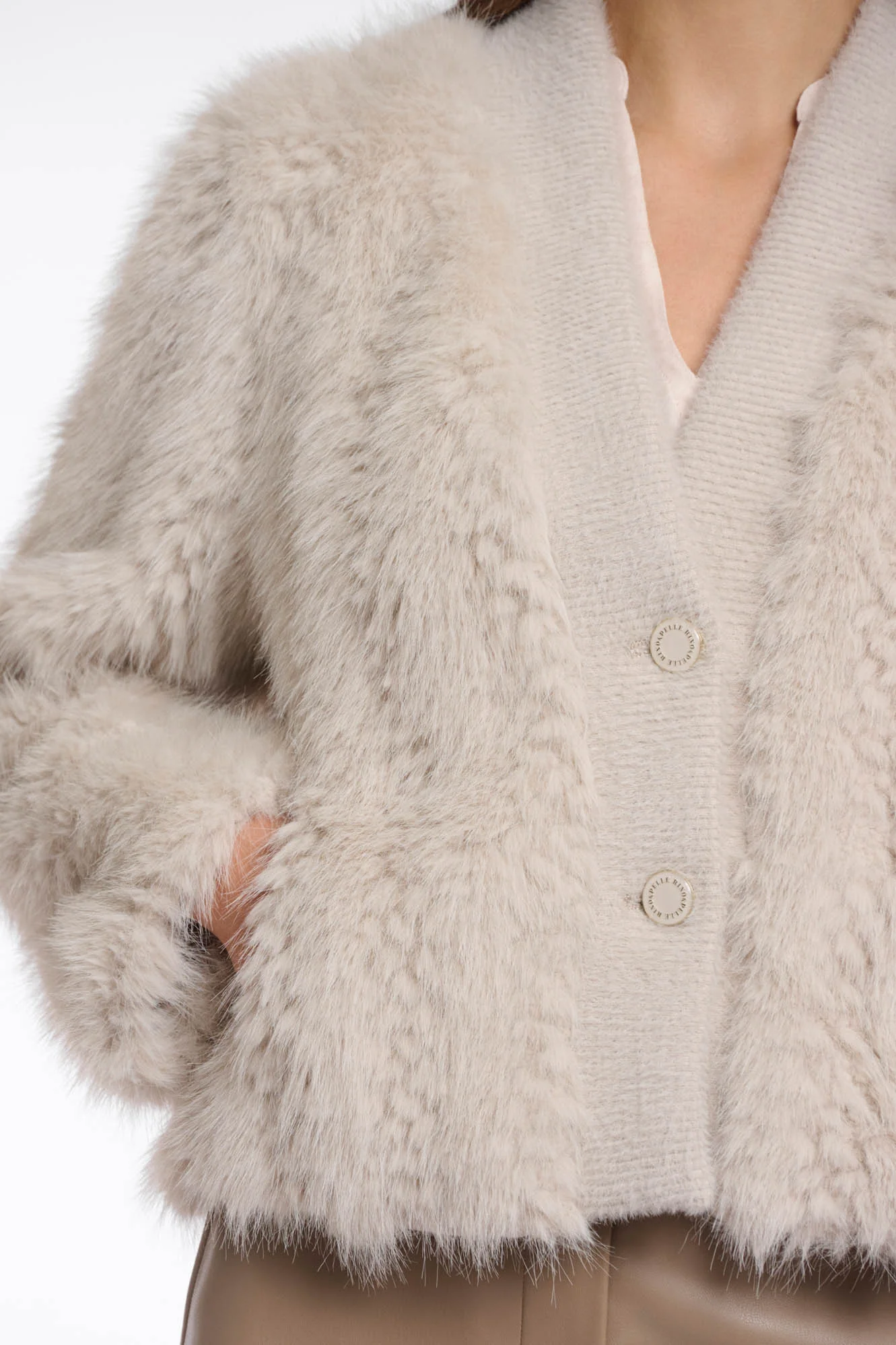 Indulge in ultimate cozy chic with the Rino & Pelle Chaimae cardigan. This stylish cardigan features a luxuriously fluffy, faux-fur body paired with a contrasting knitted middle front. Complete with side slit pockets for practicality and a classic button closure. Stay warm and on-trend all season long.