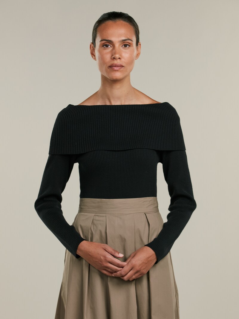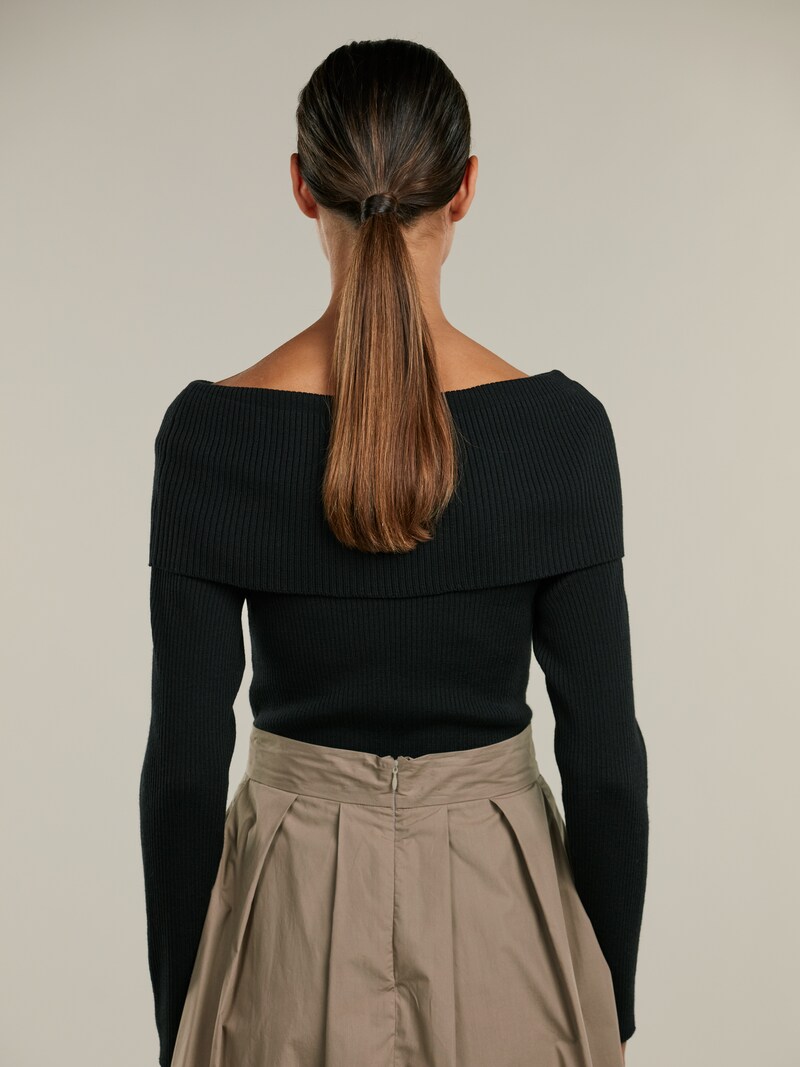 Stenströms ribbed off shoulder top is made of merino wool.