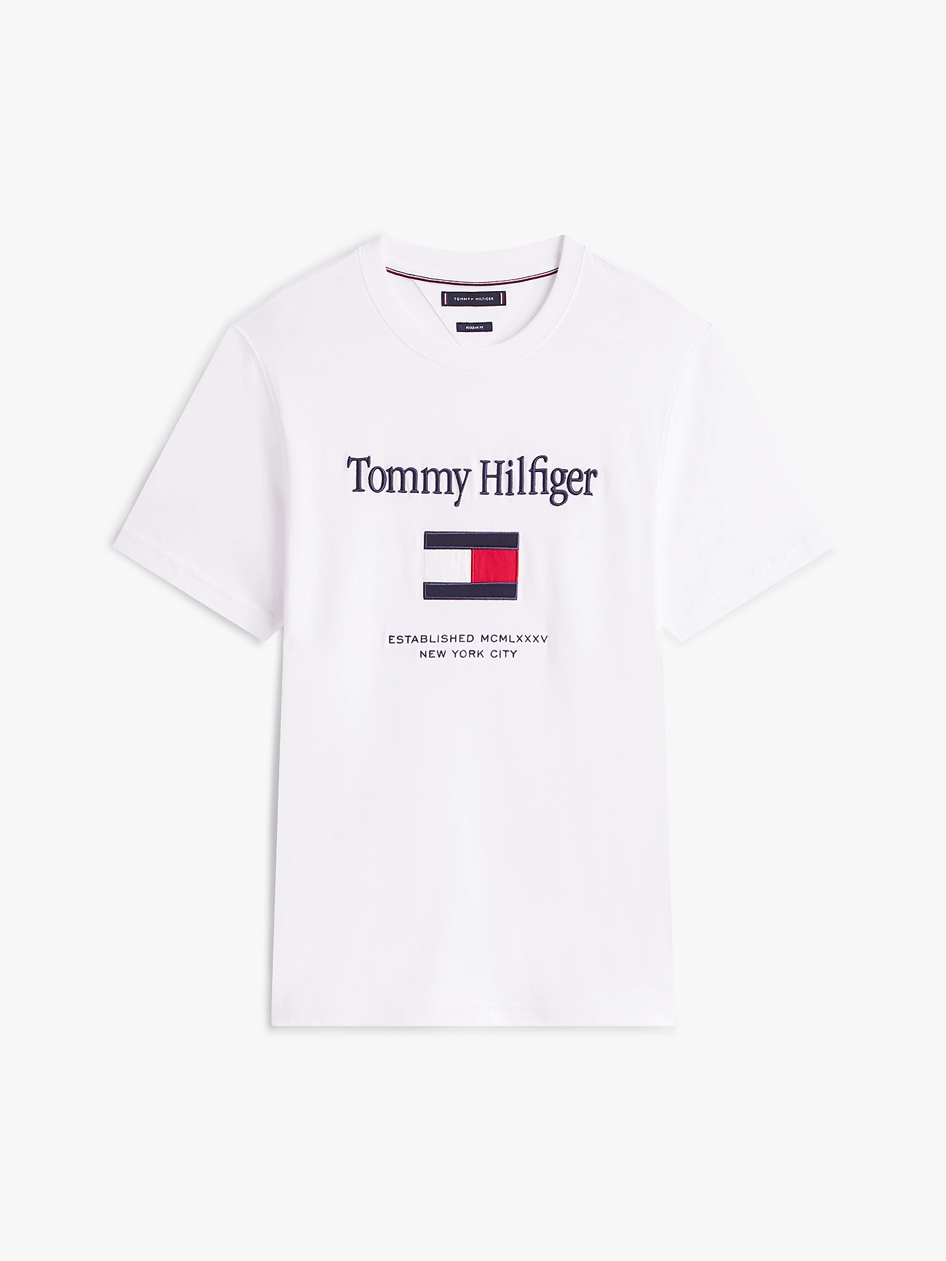 Tommy Hilfiger Logo Embroidery Crew Neck T-Shirt White