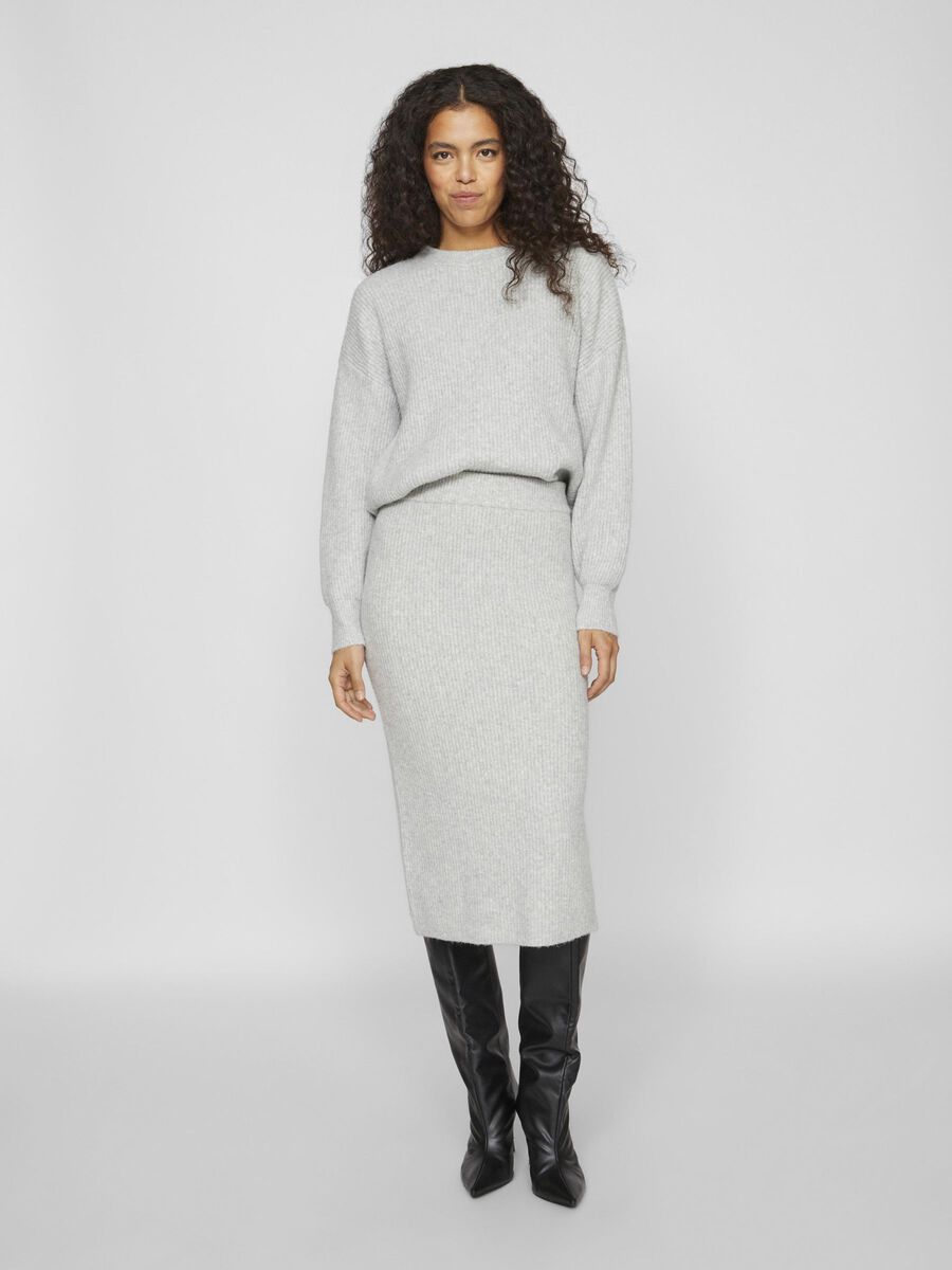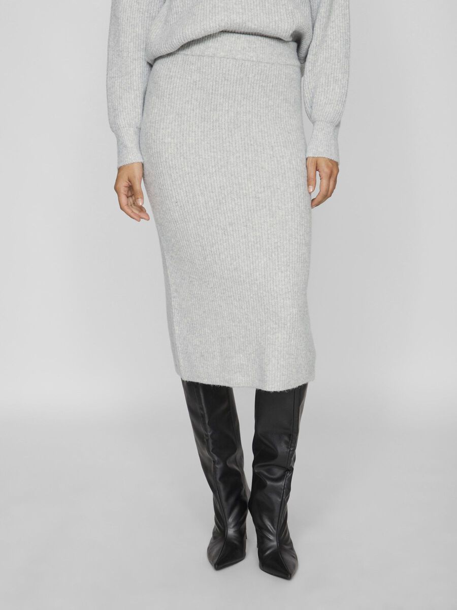 Vila Kachel Knit Pencil Skirt Light Grey Melange